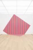 - Peinture acrylique blanche sur tissu rayé blanc et bleu, Novembre, 1969,
