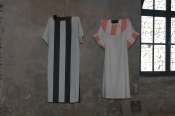 - Peinture acrylique blanche sur tissu rayé blanc et orange, Octobre, 1966,
