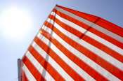 - Peinture acrylique blanche sur tissu rayé blanc et rouge, Août, 1970,