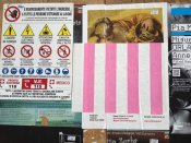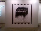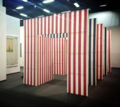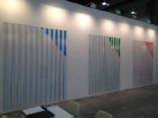 - Peinture acrylique blanche sur tissu rayé blanc et vert clair, Juin, 1989,