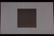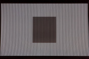 - Peinture acrylique blanche sur tissu rayé blanc et noir, Août, 1973,