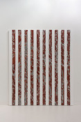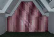 - Peinture acrylique blanche sur tissu rayé blanc et rouge, Mars, 1972,