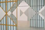 - Peinture acrylique sur tissu rayé blanc et jaune d'or, Juillet, 1989,