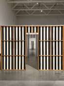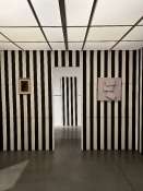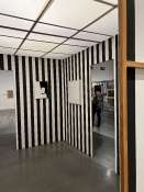 - Peinture acrylique blanche sur tissu rayé blanc et noir, Septembre, 1973,