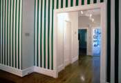 - Peinture acrylique blanche sur tissu rayé blanc écru et vert, Octobre, 1971,