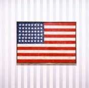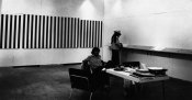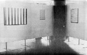 - Peinture acrylique sur tissu rayé blanc et bleu foncé, Décembre, 1970, Travail in situ