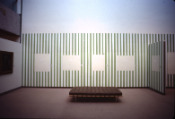 - Cinq peintures sur toile constituant une seule pièce, Juin, 1973, Travail situé