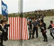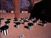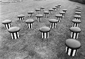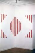 - Peinture acrylique blanche sur tissu rayé blanc et rouge, Août, 1970,