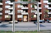 Parcours d'œuvres dans l'espace public. "Les Cent jours d'art contemporain de Montréal - Onzième et dernière édition - Promenade dans la ville", place Urbain-Baudreau-Graveline, angle des rues Sherbrooke Est et Parc Lafontaine, o.