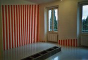- Peinture acrylique blanche sur tissu rayé blanc et rouge, Octobre, 1969,