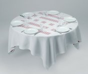 - Peinture acrylique blanche sur tissu rayé blanc et rouge, Août, 1970,