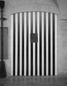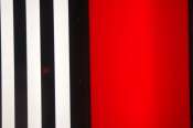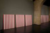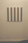 - Peinture acrylique blanche sur tissu rayé blanc et gris foncé, Octobre, 1969,