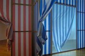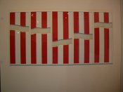 - Peinture acrylique blanche sur tissu rayé blanc et bleu, Novembre, 1969,