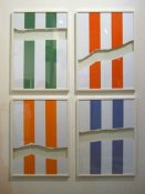 - Peinture acrylique blanche sur tissu rayé blanc et gris anthracite, Novembre, 1966,