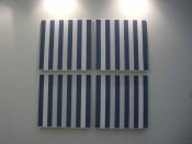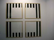 - Peinture acrylique blanche sur tissu rayé blanc et rouge, Septembre, 1971,