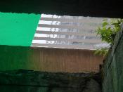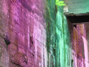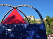 Documents exposés: Photos-souvenirs et documents d’archive de l’œuvre La Haie ouverte et colorée, octobre 2010, travail in situ, in “Un Musée éphémère : [Emménagement # 3]”, Le Château de La Roche-Guyon, France.
