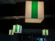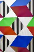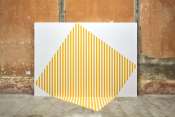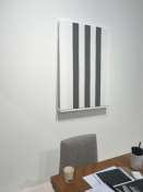 - Peinture acrylique blanche sur tissu rayé blanc et noir, Septembre, 1973,