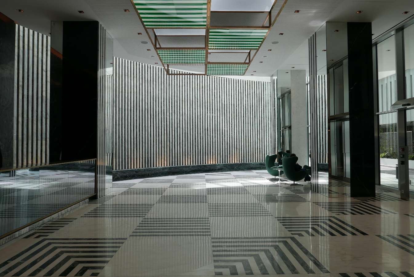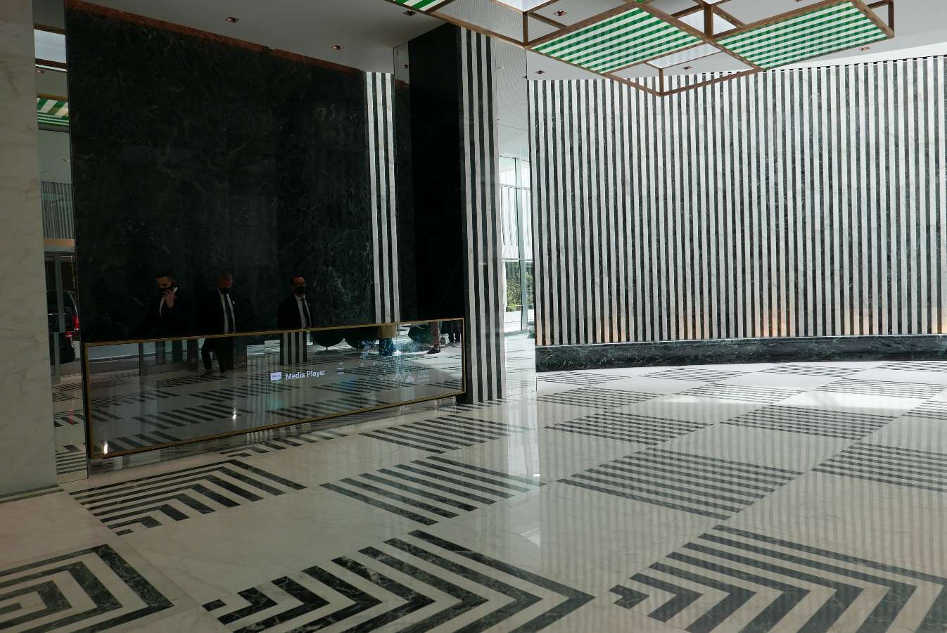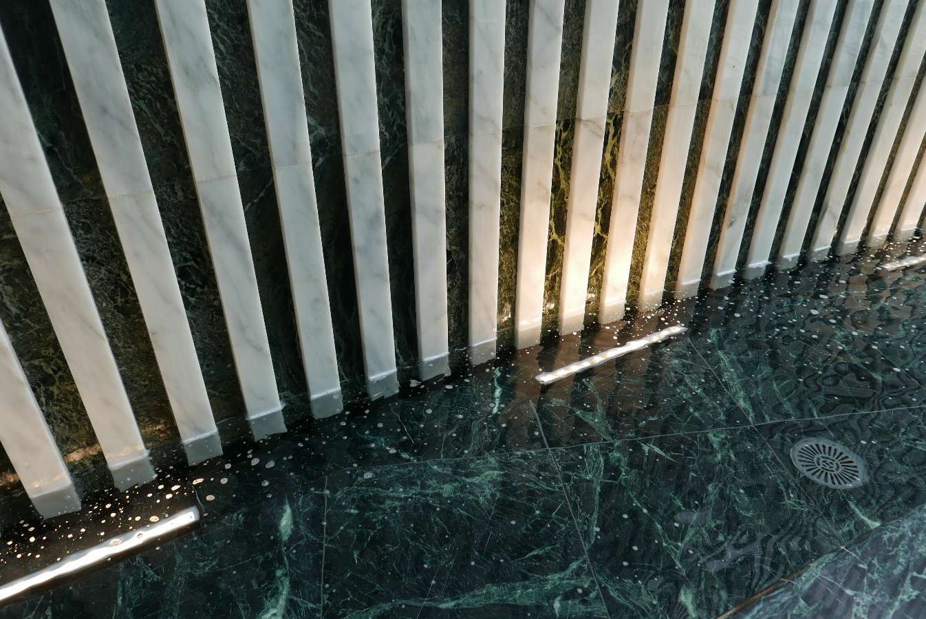 Sol, murs, cascade, plafonnier…
