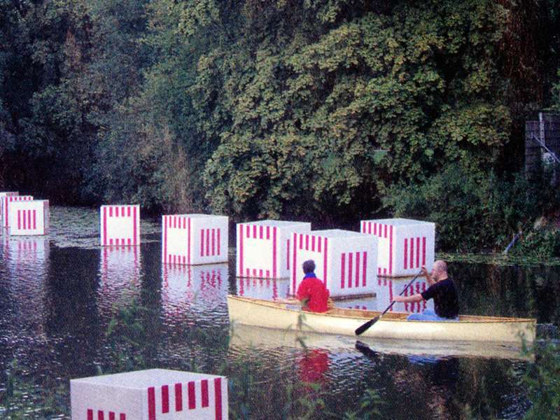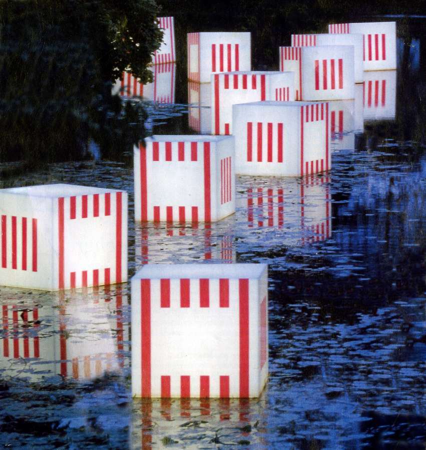 Internationale Lichtkunst an Braunschweiger Okerbrücken, Drachenbrücke / Bürgerpark, Brunswick, Allemagne