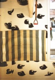 - Peinture acrylique blanche sur tissu rayé blanc et vert, Décembre, 1969,