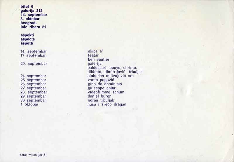 "Manifestacija Acte II", "Aspekti" / "Aspects" / "Aspetti" - "6 Bitef 72 (Belgrade international theatre festival)"