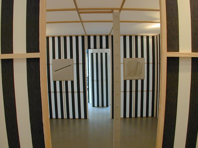 - Cabane éclatée avec tissu blanc et noir, Octobre, 2004,