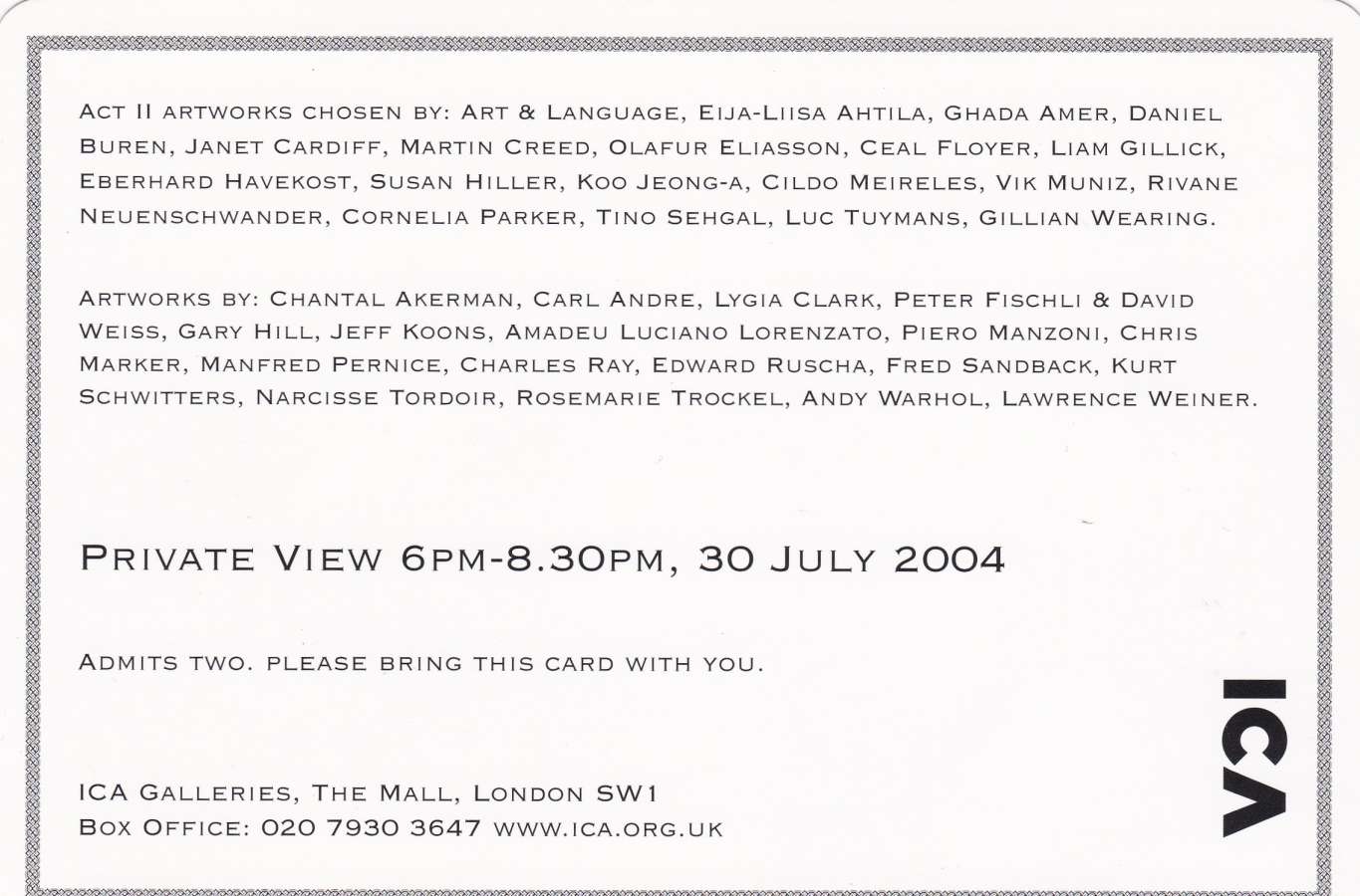 "Artists's Favourites / An Exhibition in two acts / Act II"