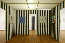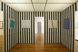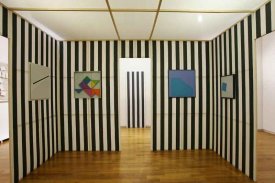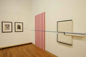 - Intervention de Krasinski sur Peinture acrylique blanche sur tissu rayé blanc et rouge, 1970 / Octobre, 2004,