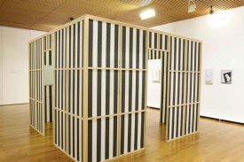 - Cabane éclatée avec tissu blanc et noir, Octobre, 2004,