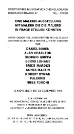 "Eine Malerei-Ausstellung mit Malern, die Malerei in Frage stellen könnten" = (“Une exposition de peinture réunissant certains peintres qui mettraient la peinture en question”)