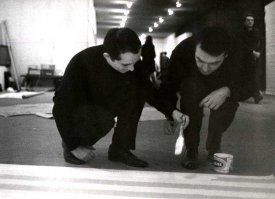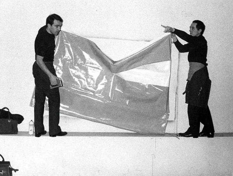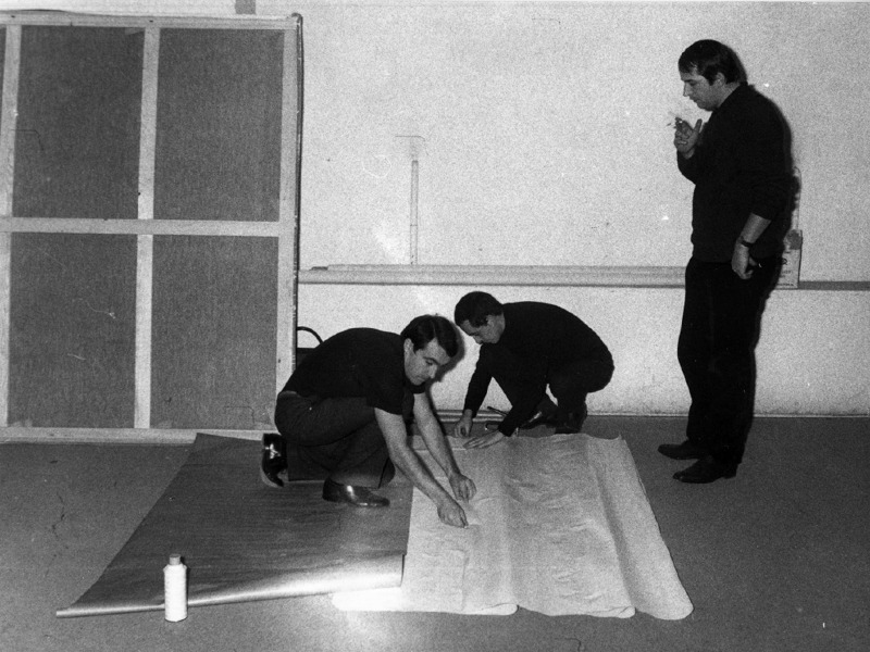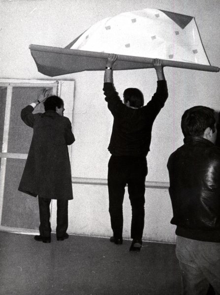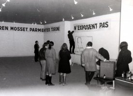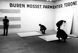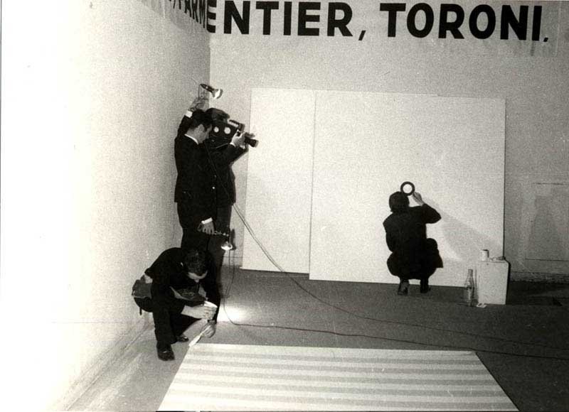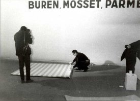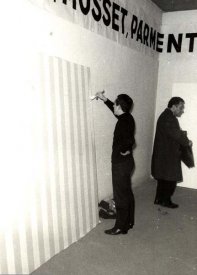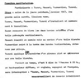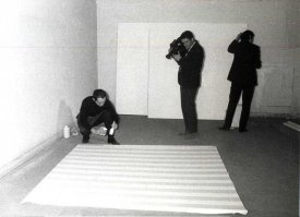 - Manifestation 1 – Peinture acrylique blanche sur tissu rayé blanc et gris, 3 janvier, 1967,