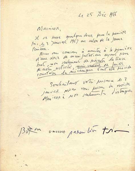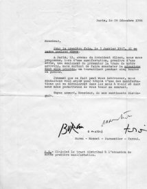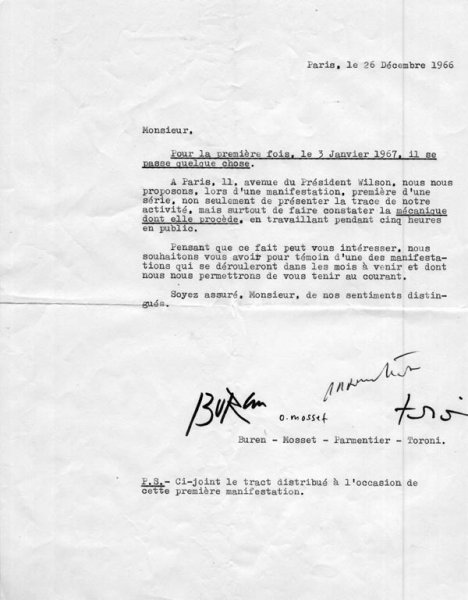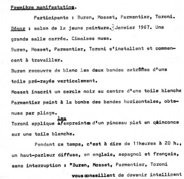 - Manifestation 1 – Peinture acrylique blanche sur tissu rayé blanc et gris clair, 3 janvier, 1967,
