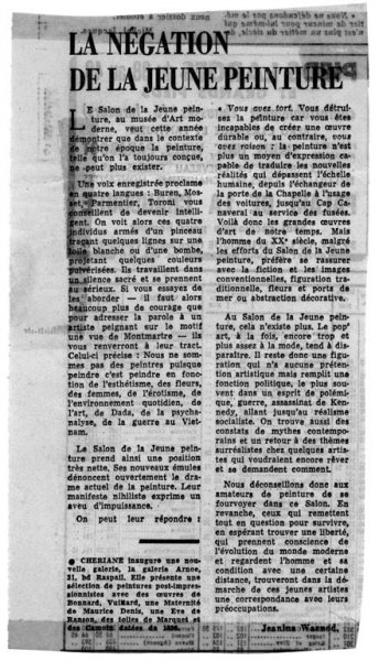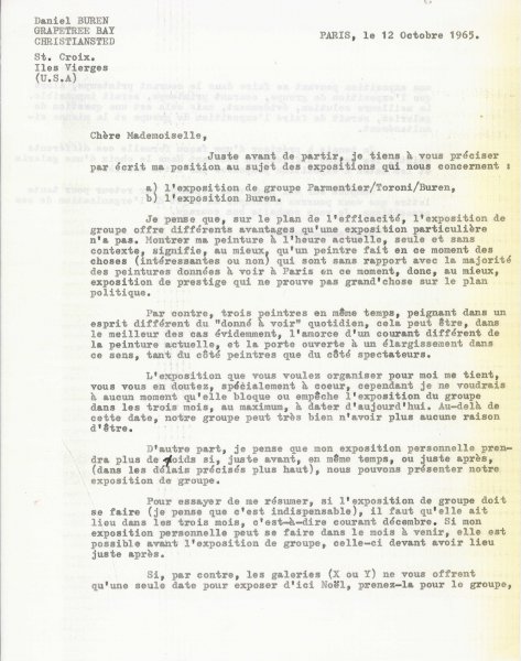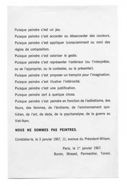 - Manifestation 1 – Peinture acrylique sur tissu rayé, 3 janvier, 1967,