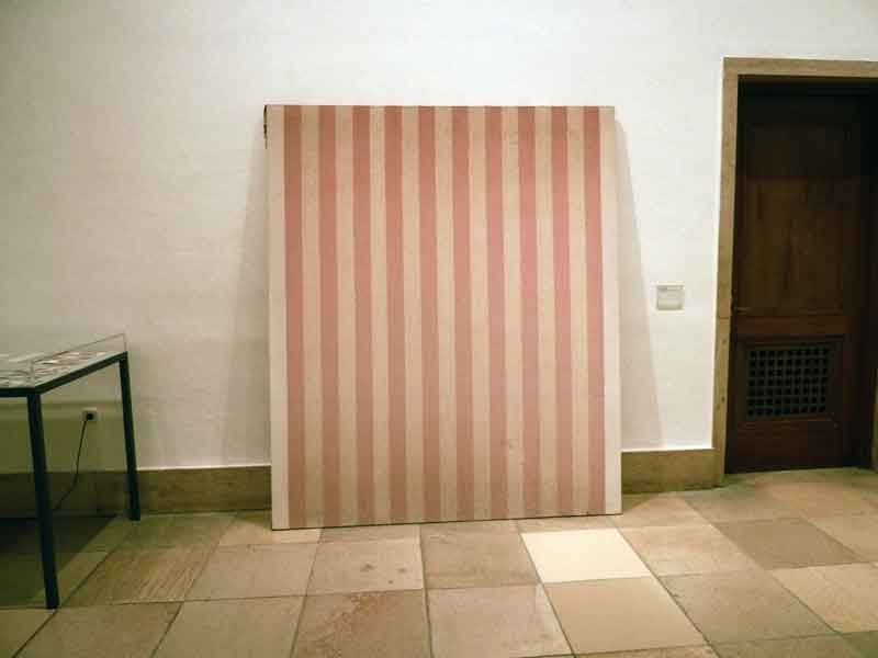 - Peinture acrylique blanche sur tissu rayé blanc et rouge, Juillet, 1970,