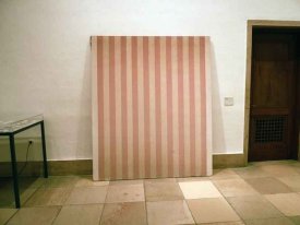 - Peinture acrylique blanche sur tissu rayé blanc et gris clair, Février, 1970,