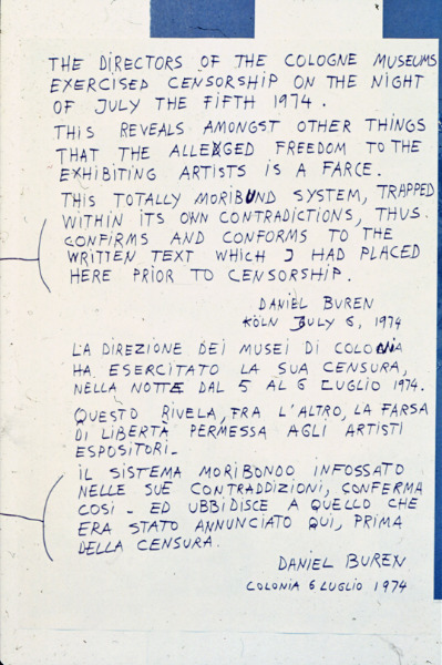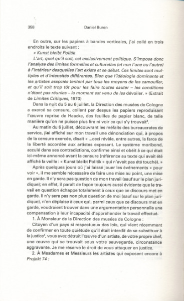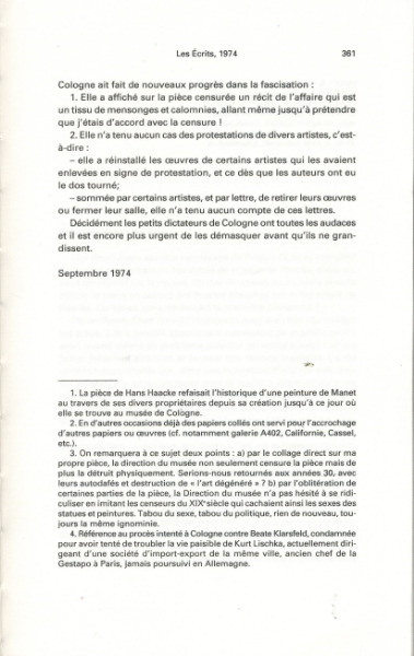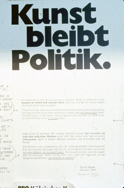 - Kunst Bleibt Politik, Juillet, 1974, Travail in situ