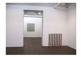 - Peinture acrylique blanche sur tissu rayé blanc et gris foncé, Octobre, 1969,
