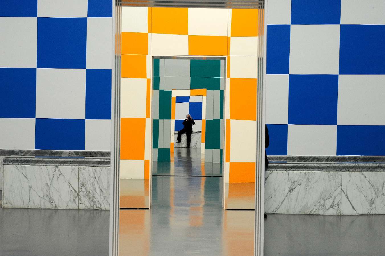 - Acht Farben und ihr Spiegelbild für vier Räume Huit couleurs et leur reflets pour quatre salles, Février, 2011, Travail in situ