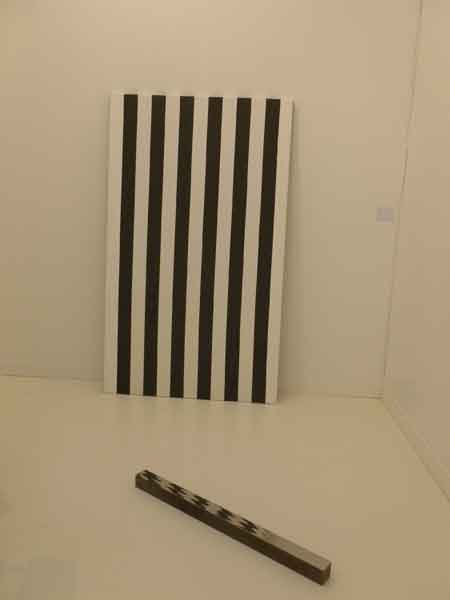 - Peinture acrylique blanche sur tissu rayé blanc et noir, Février, 1970,