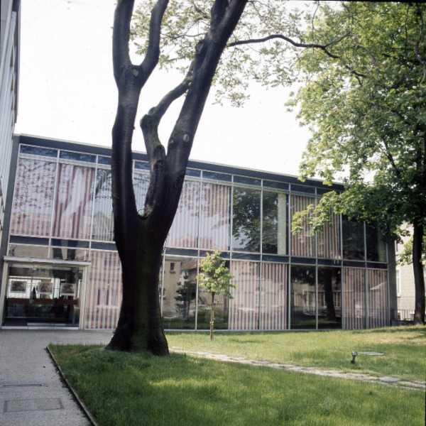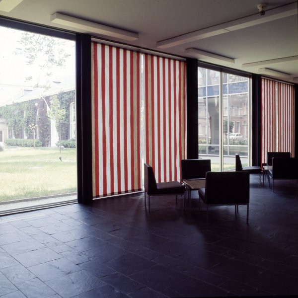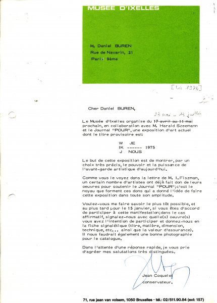 - Pour la Façade du musée d’Ixelles / Une Peinture en douze éléments sur une architecture, mai, 1975, Travail in situ