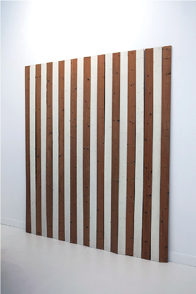 - Peinture acrylique blanche sur tissu rayé blanc et noir, Mars, 1979,