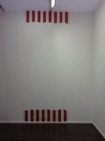 - Peinture acrylique blanche sur tissu rayé blanc et bleu, Novembre, 1970,