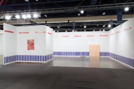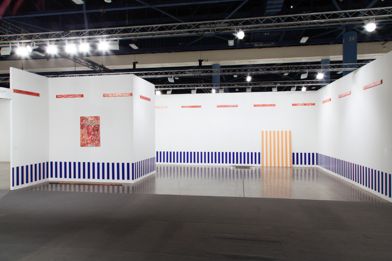 - Peinture acrylique blanche sur tissu rayé blanc et orange, Février, 1974,
