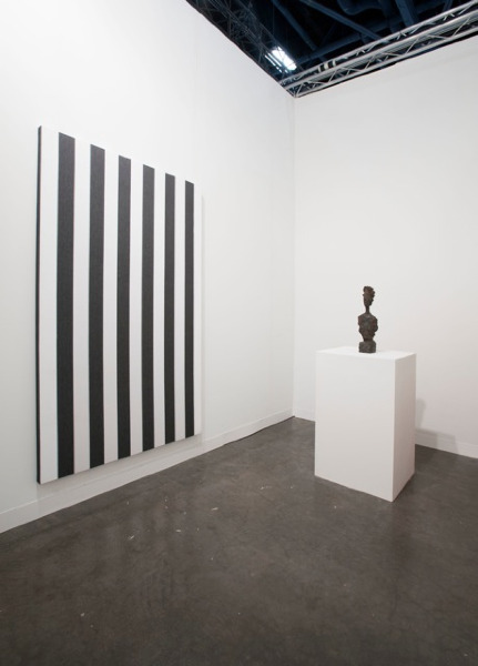 - Peinture acrylique blanche sur tissu rayé blanc et noir, Février, 1970,