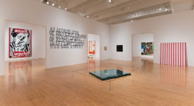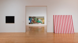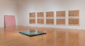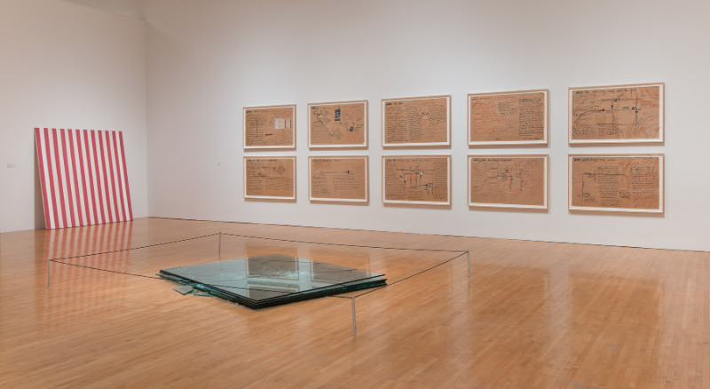 - Peinture acrylique blanche sur tissu rayé blanc et rouge, Septembre, 1971,