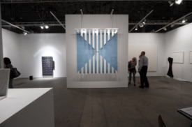 - Peinture acrylique blanche sur tissu rayé blanc et bleu, Novembre, 1970,