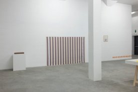 - Peinture acrylique blanche sur tissu rayé blanc et bleu, Novembre, 1969,