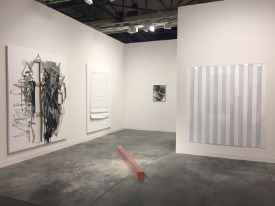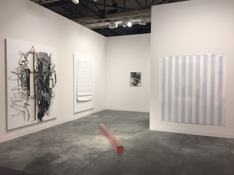 - Peinture acrylique blanche sur tissu rayé blanc et noir, Août, 1973,