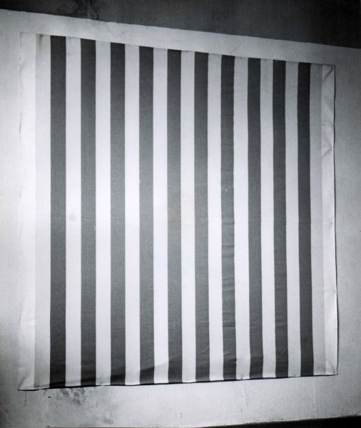 - Peinture acrylique blanche sur tissu rayé blanc et [rouge] , Février, 1968,