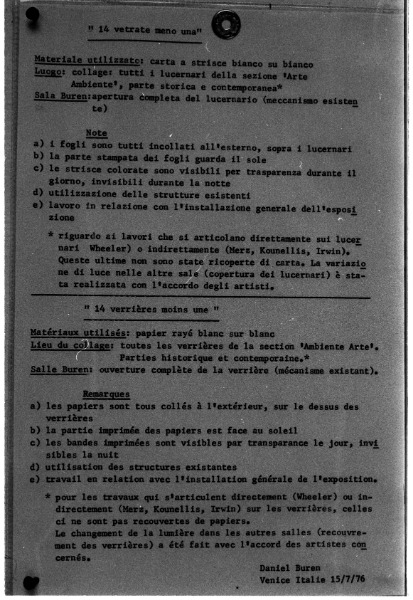 - Quatorze verrières moins une, Juin, 1976, Travail in situ